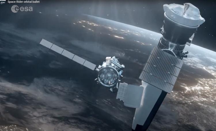 L’animation « Space Rider orbital ballet » montre l’appareil s’approchant d’une plus grande plateforme orbitale qui tourne autour de la Terre. Dans le scénario imaginé, Space Rider se positionne près de la plateforme en maintenant une relation stable de distance et de vitesse. Il déploie ensuite un bras robotique depuis son fuselage, avec lequel il saisit des modules conteneurs standardisés. Il en livre certains à la plateforme, tandis qu’il en récupère d’autres dans sa soute pour les redescendre plus tard sur Terre.
